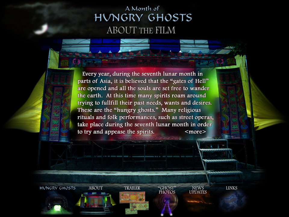 About the Film: Every year in parts of Asia during the seventh lunar month it is believed that the gates of Hell are opened and all the souls are set free to wander the earth. At this time many spirits roam around trying to fulfill their past needs, wants and desires. These are the "hungry ghosts." Many religious rituals and folk performances, such as street operas, take place during the seventh lunar month in order to try and appease the spirits. This documentary film captures the seventh lunar month rituals in Singapore, a world class center of business and culture inhabited by many different immigrants from other Asian countries. Although the hungry ghost rituals originated in China and are still practiced throughout Southeast Asia in various forms, they are slowly dying out in many countries or may only be performed for a few days out of the month. Singapore is unique in that the rituals are brought to life throughout the entire seventh lunar month. At the same time, the immigrants to Singapore have brought their own native rituals to one small island country where hungry ghost month still thrives. "A Month of Hungry Ghosts" captures these rituals and performances throughout an entire seventh lunar month in Singapore. |